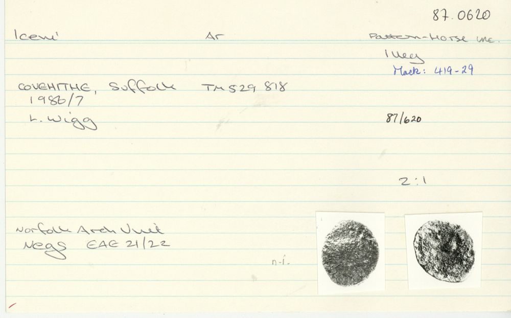ED or EDN: Globular horse right, large oval head with pellet for eye, S below head, wreath-like mane, two pellets below tail, pelleted sun above, two pellets and ED or EDN below