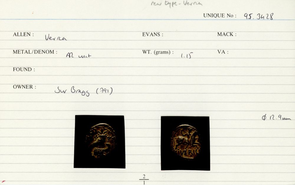 - VIIR VER: Mythical creature (hippocampus?) or sea horse left, pellet in ring and trefoil motif above, VIIR or VER below