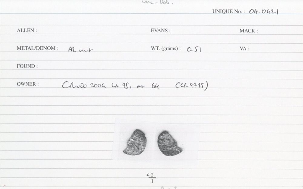 ABC 453, Hobbs 1690, Mack 173, Spink 261, Van Arsdell 1855