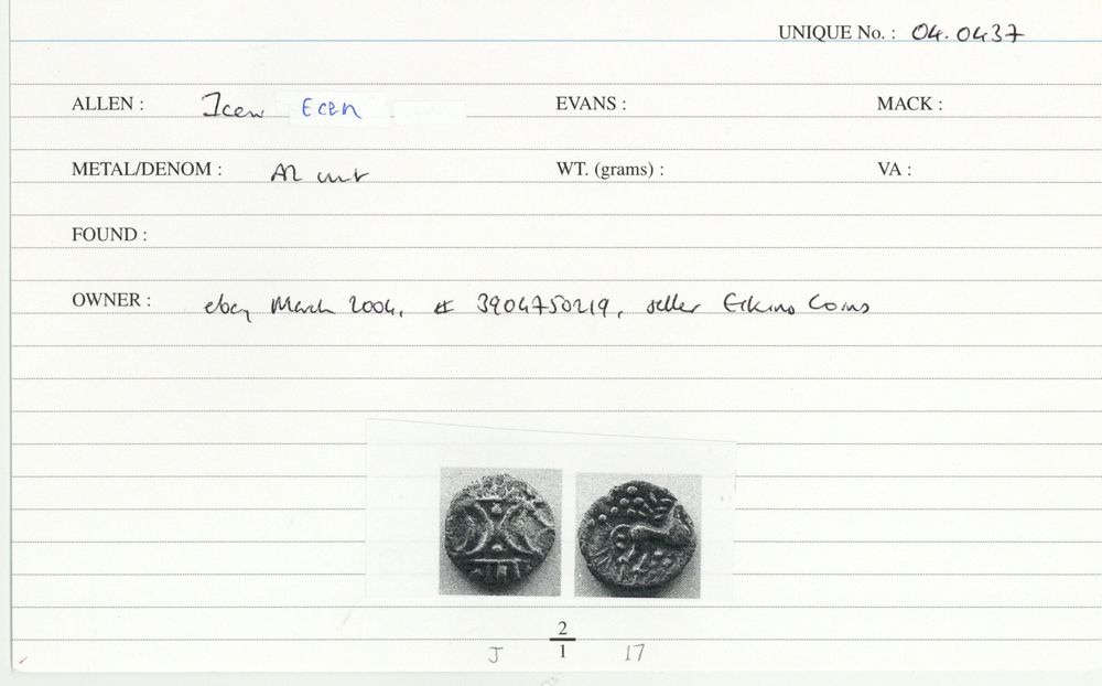 ABC 1579, Allen boar/horse B, Hobbs 3455-72, Mack 408, Spink 431, Van Arsdell 657