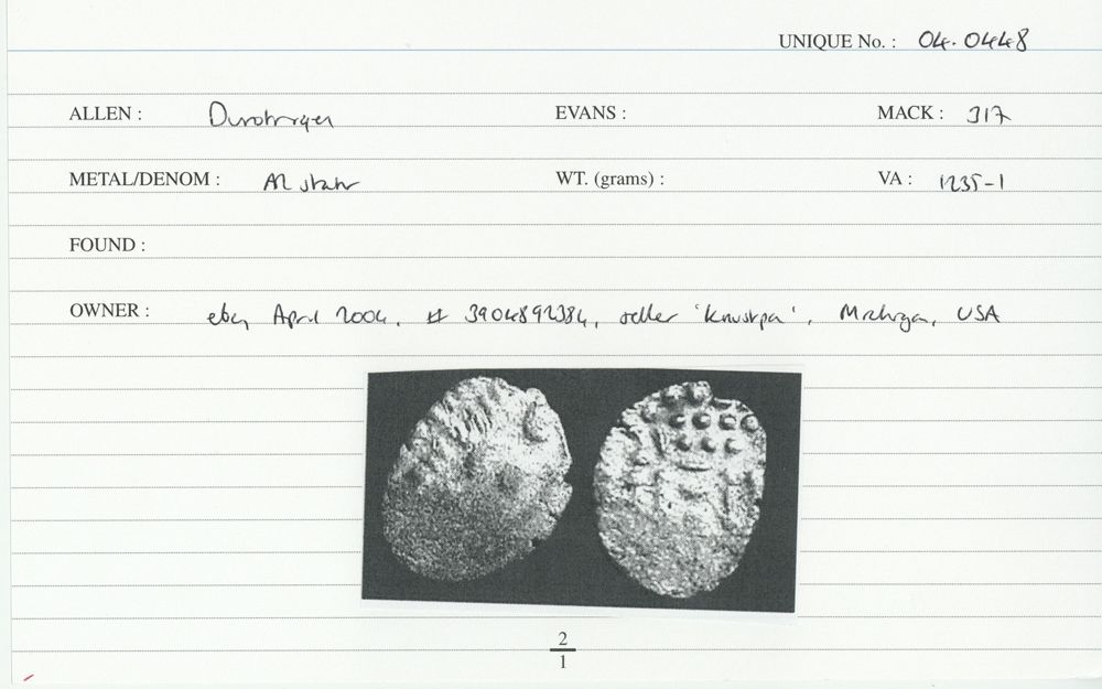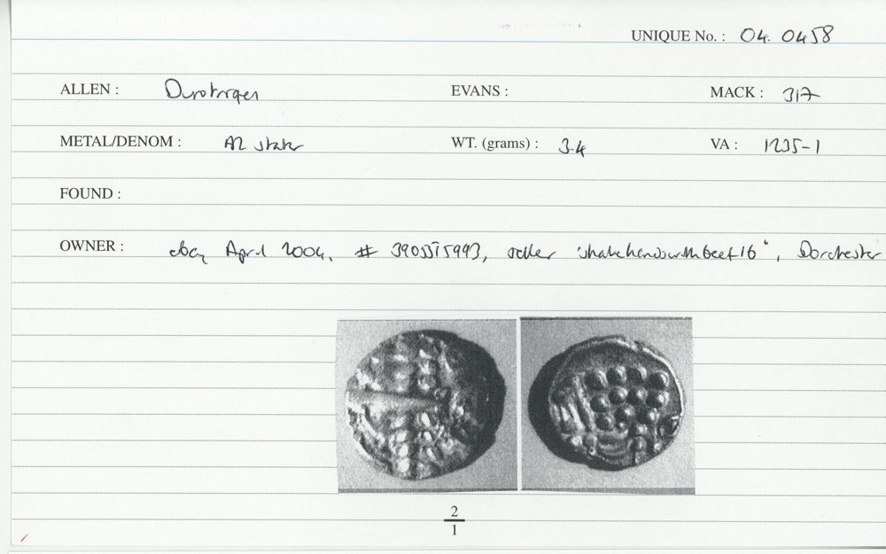 ABC 1669, Allen Ece B reversed, Hobbs 4514-38, Mack 428, Spink 445, Van Arsdell 766