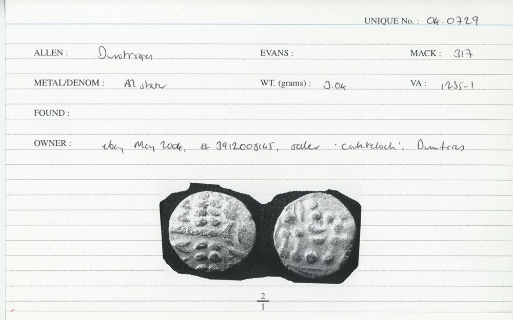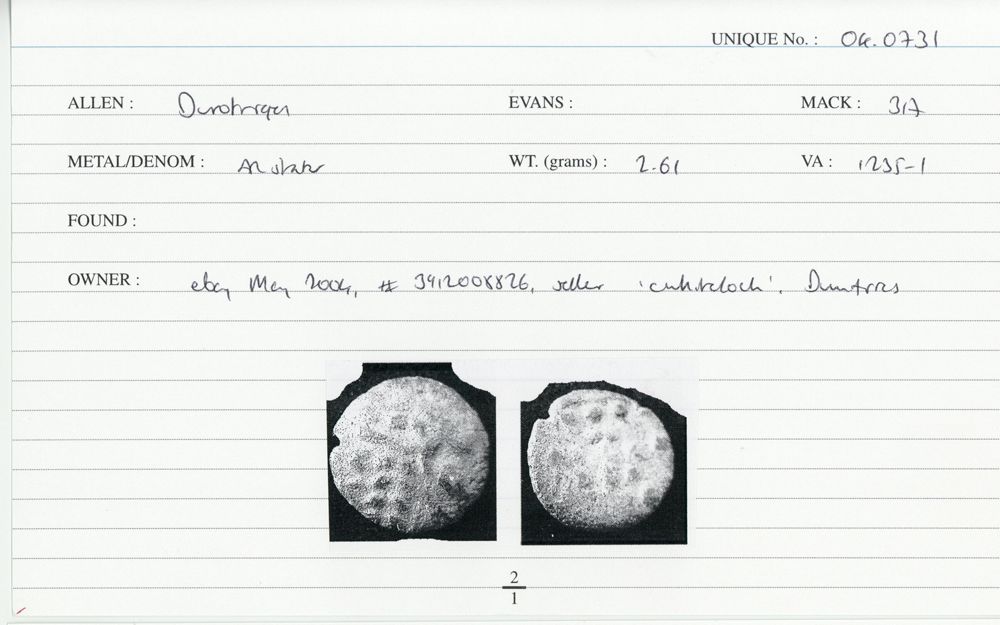 ABC 2066, Hobbs 3023-27, Mack 386, Spink 379, Van Arsdell 1066, 1069