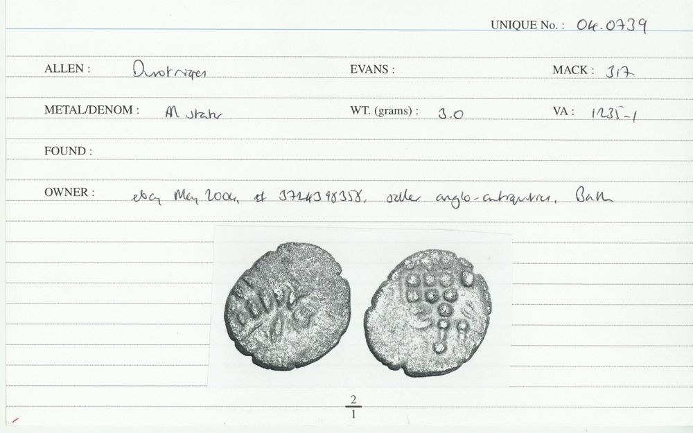 ANTE or ANTED RICOV, RICV or RIGV: Triple-tailed horse right, wheel below, ANTE or ANTED above, RICOV, RICV or RIGV in field