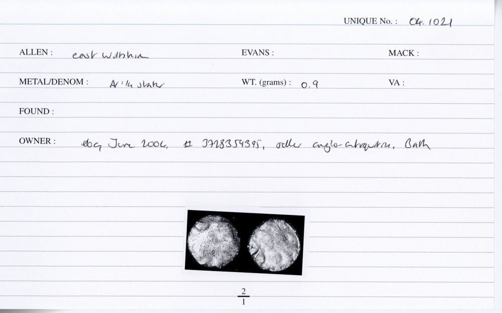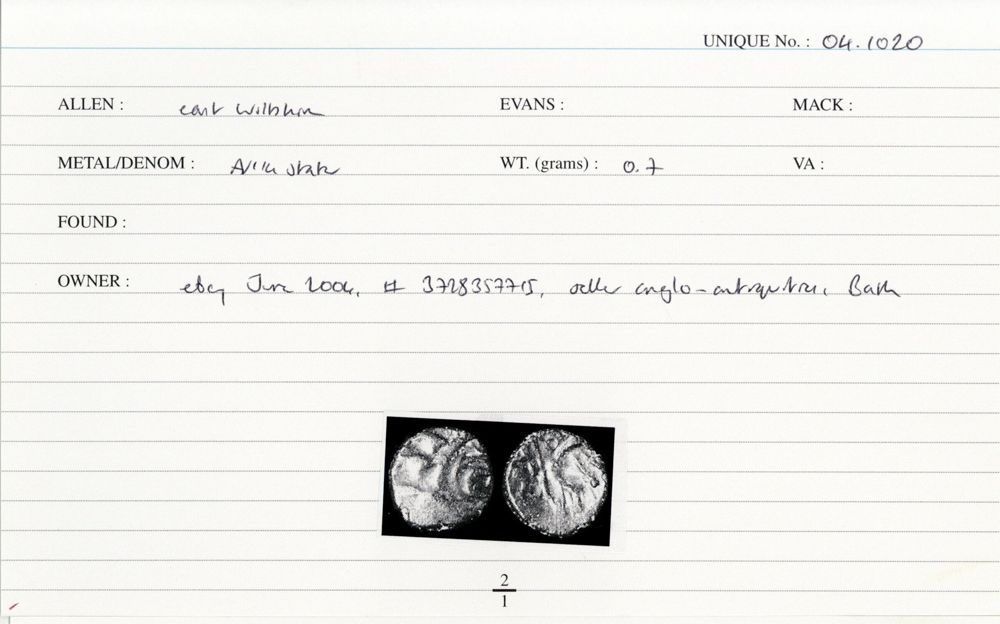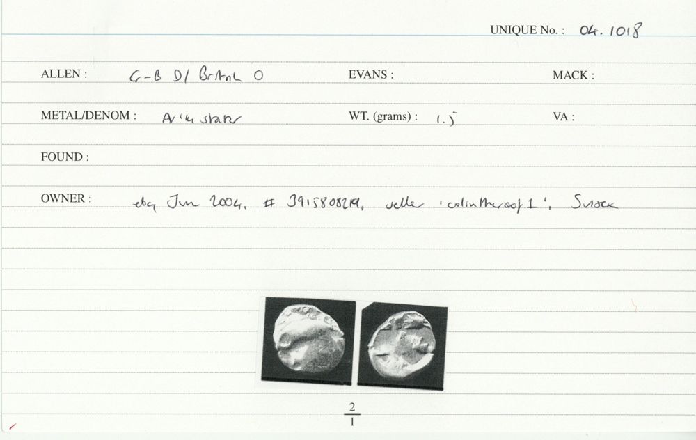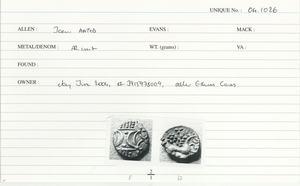ABC 2081, Allen H, Hobbs 3043-51, Mack 389, Spink 382, Van Arsdell 1110