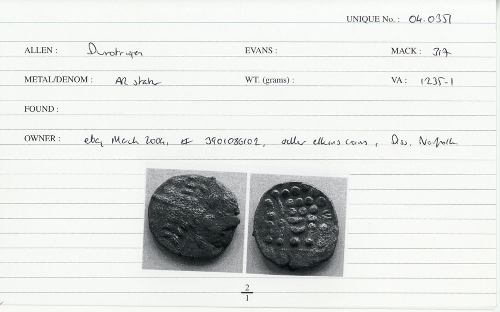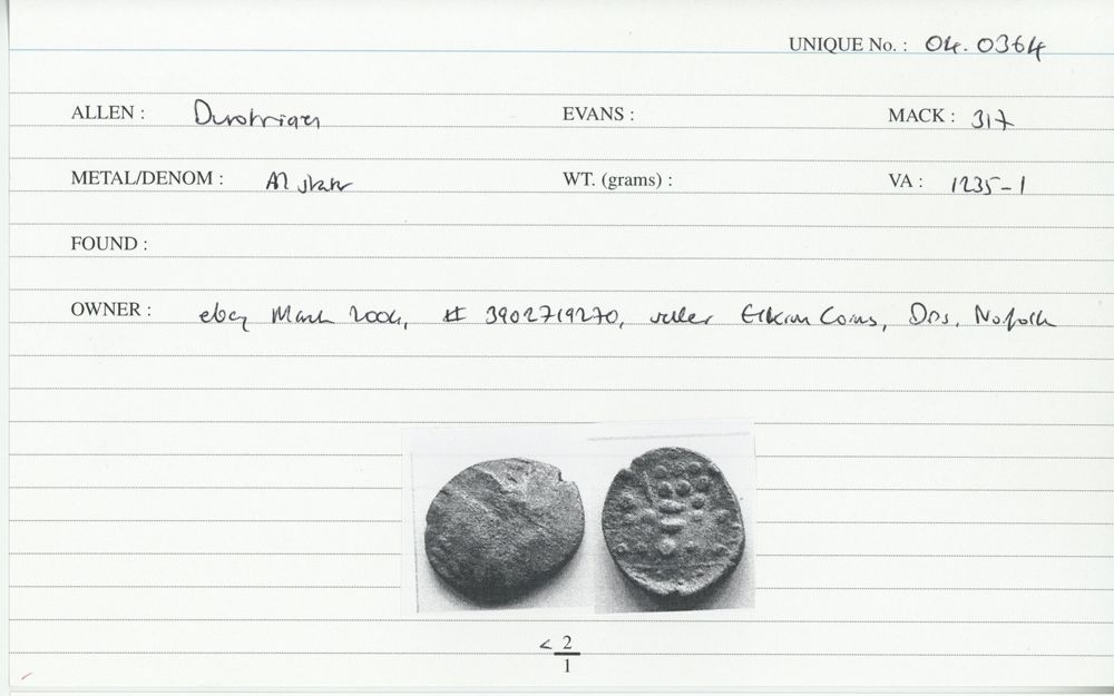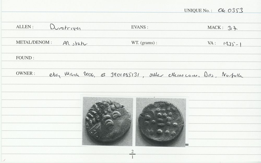 ABC 1579, Allen boar/horse B, Hobbs 3455-72, Mack 408, Spink 431, Van Arsdell 657