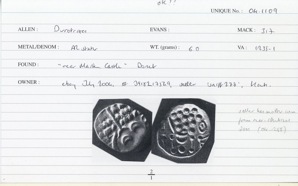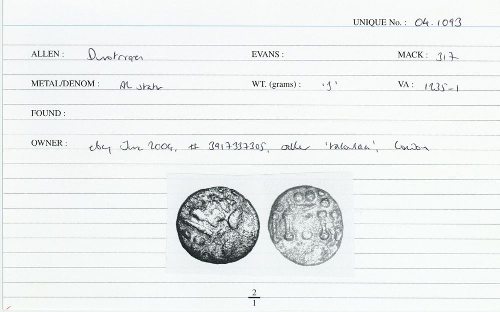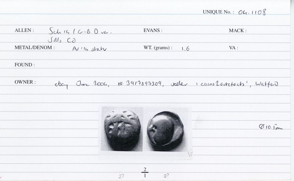 ABC 1579, Allen boar/horse B, Hobbs 3455-72, Mack 408, Spink 431, Van Arsdell 657