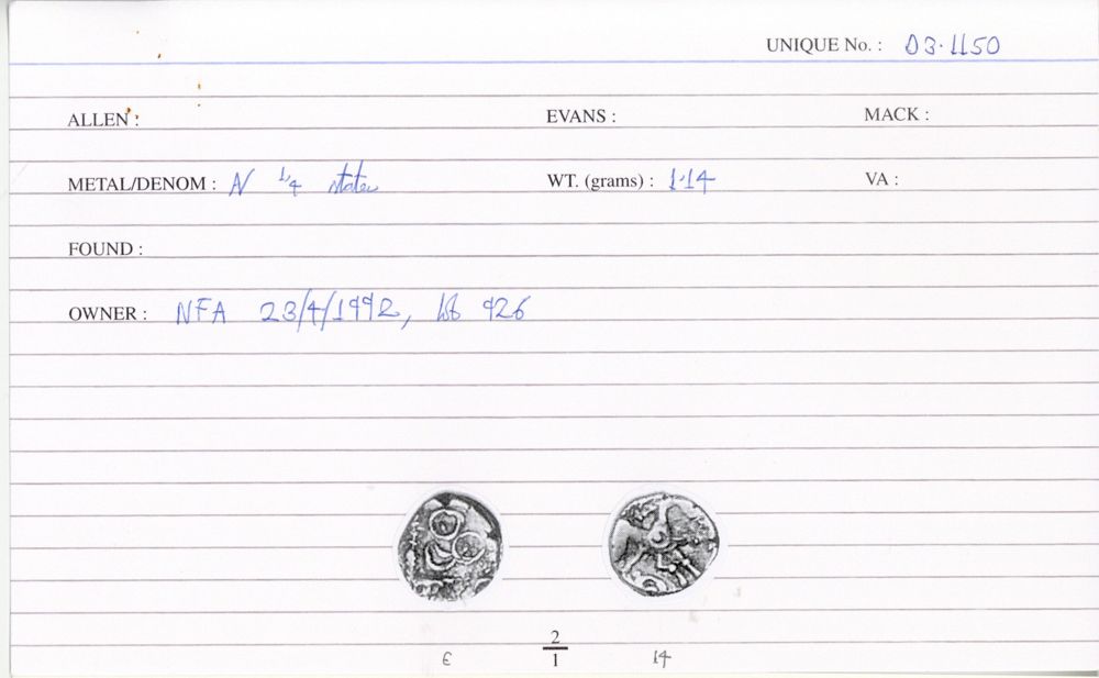 ABC 1588, Allen LX20 (early pattern/horse A), Hobbs 3763-66, Mack 414, Spink 435, Van Arsdell 679