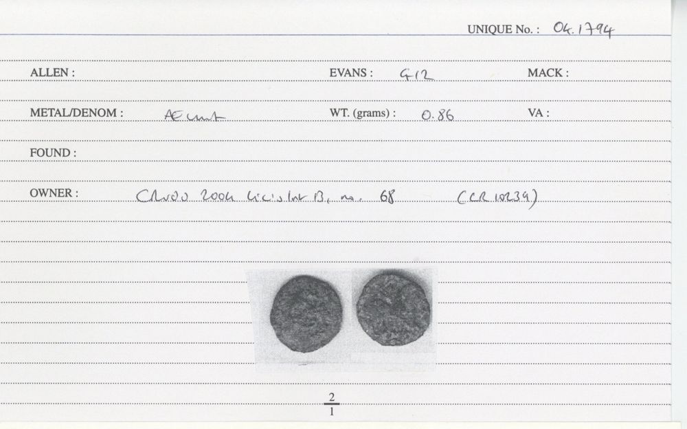 ABC 2214, Hobbs 2748-70, Mack 319, Spink 368, Van Arsdell 1260