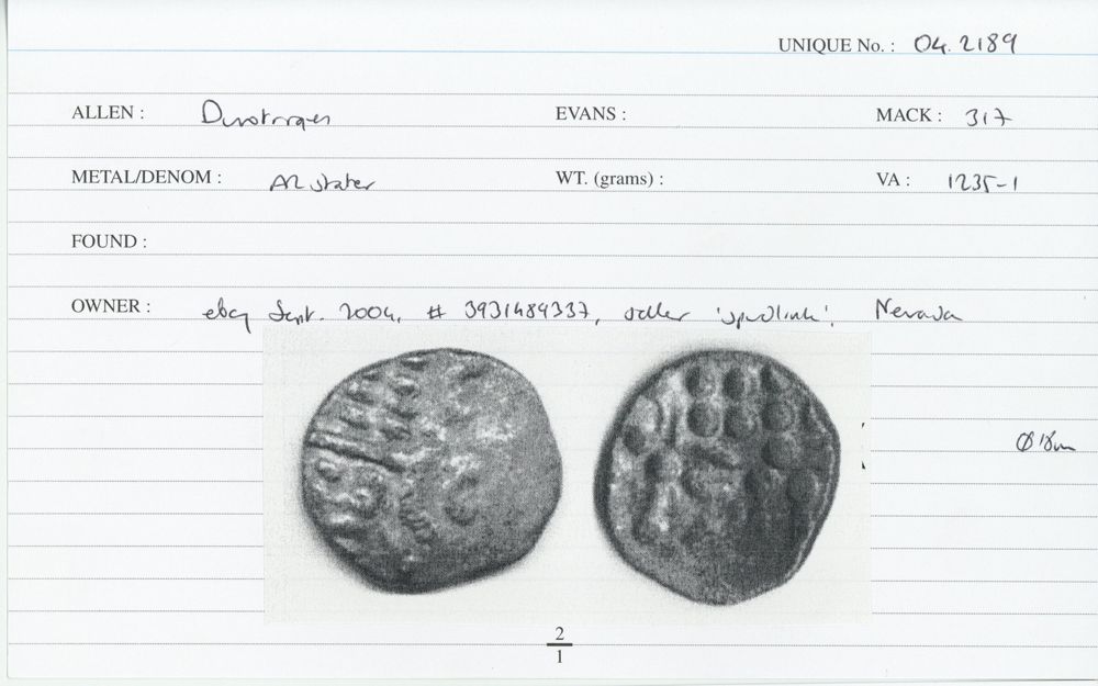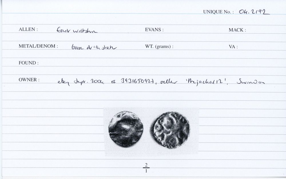 ABC 1579, Allen boar/horse B, Hobbs 3455-72, Mack 408, Spink 431, Van Arsdell 657