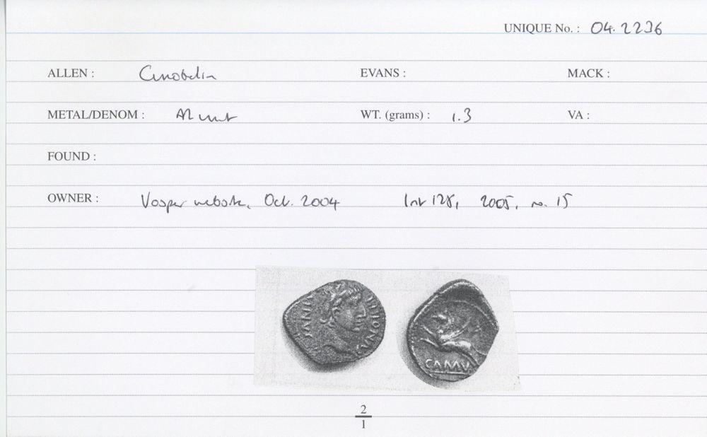 ABC 1734, Allen D, Hobbs 204-10, Mack 56, Spink 29, Van Arsdell 805-11