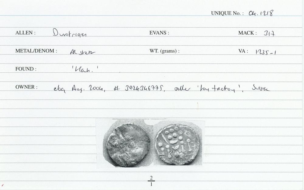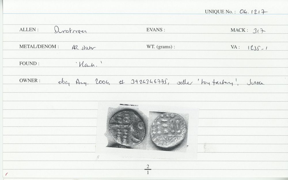 ANT: Horse right, large oval head with pellet for eye, reversed S below head, corn-ear mane, two pellets below tail, pelleted sun above, pellet triad (see note) and ANT monogram below
