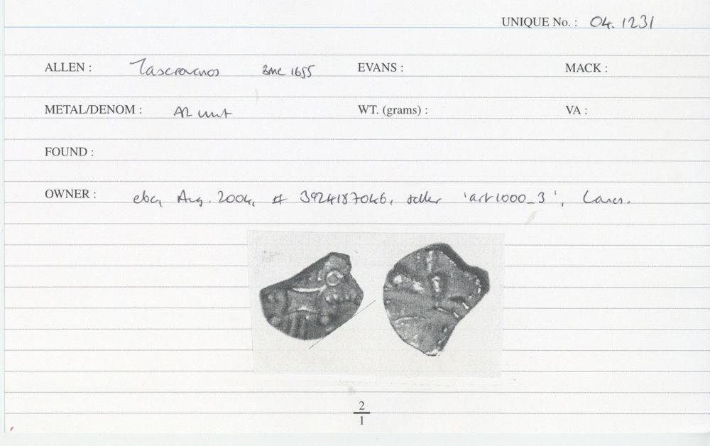 ABC 1199, Hobbs 1179-1206, Mack 112, Spink 124, Van Arsdell 466