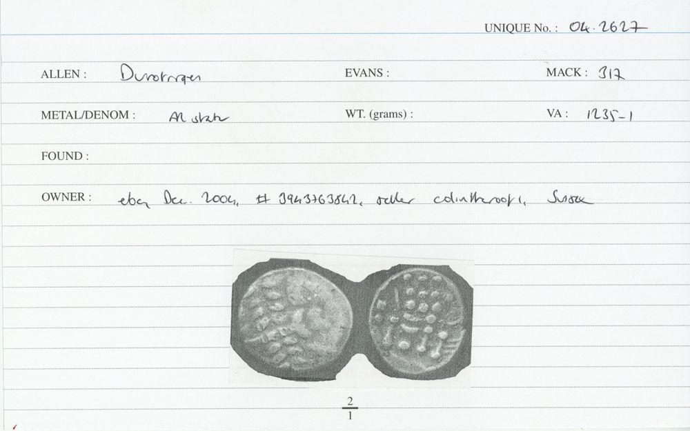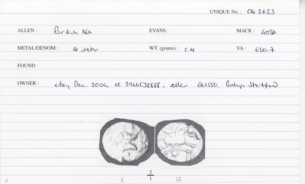 ABC 1474, Allen ND, Hobbs 3436, Mack 404, Spink 430, Van Arsdell 628