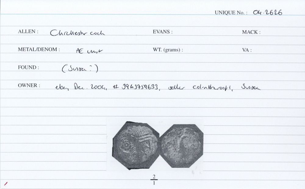 ABC 2433, Allen LA, Hobbs 295-330, Mack 135, Spink 32, Van Arsdell 1476